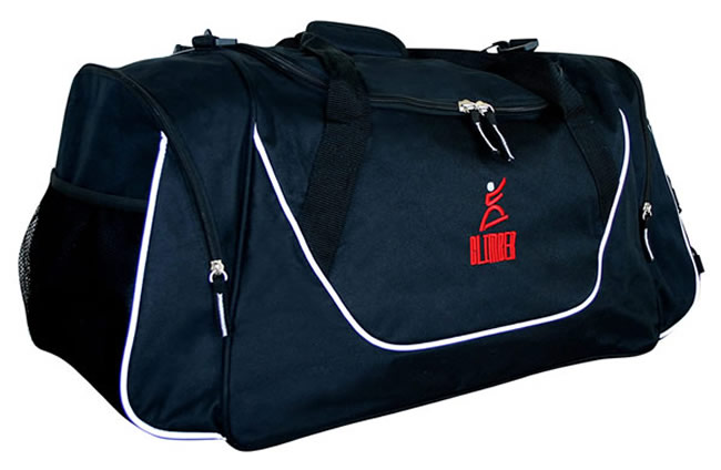- Single zippered pockets on each end with contrast